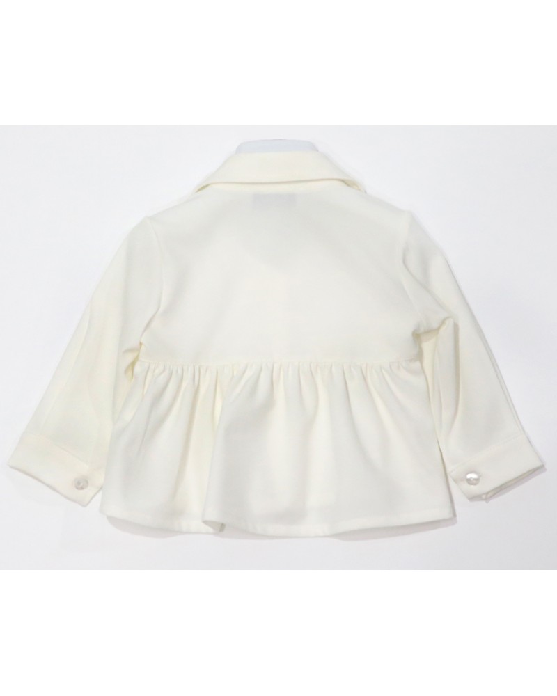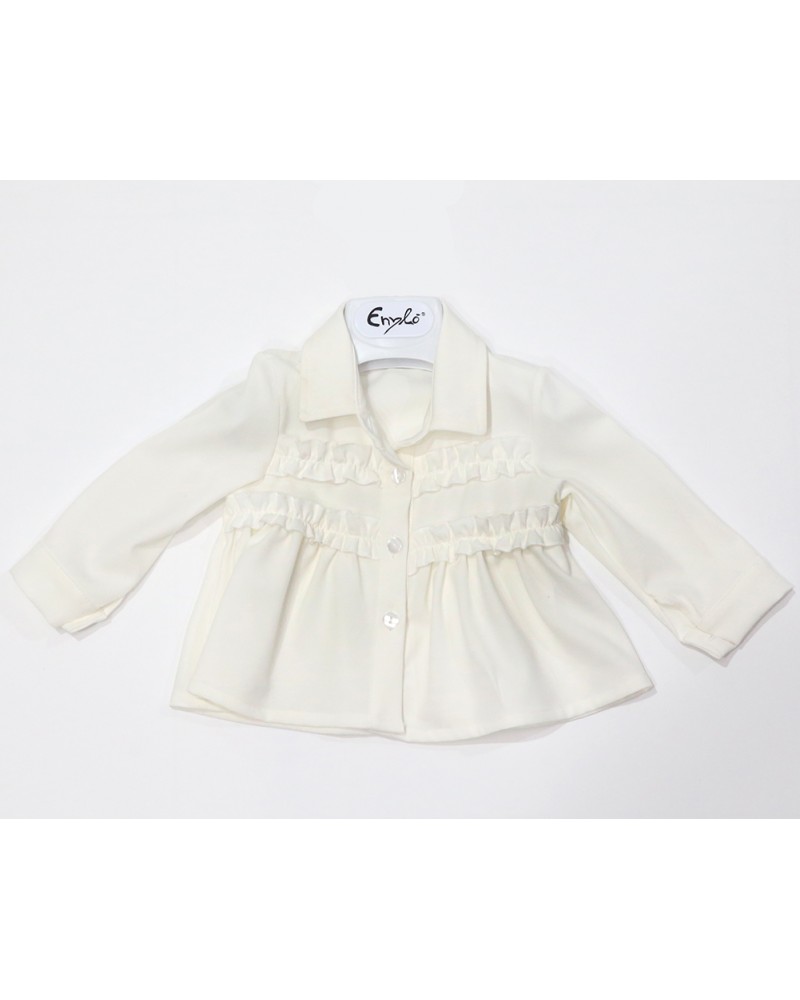 Camicia Neonata colore panna con maniche lunghe e polsino con bottone. Realizzata con tessuto superior crepe, composto da 90% Poliestere e 10% Elastam.