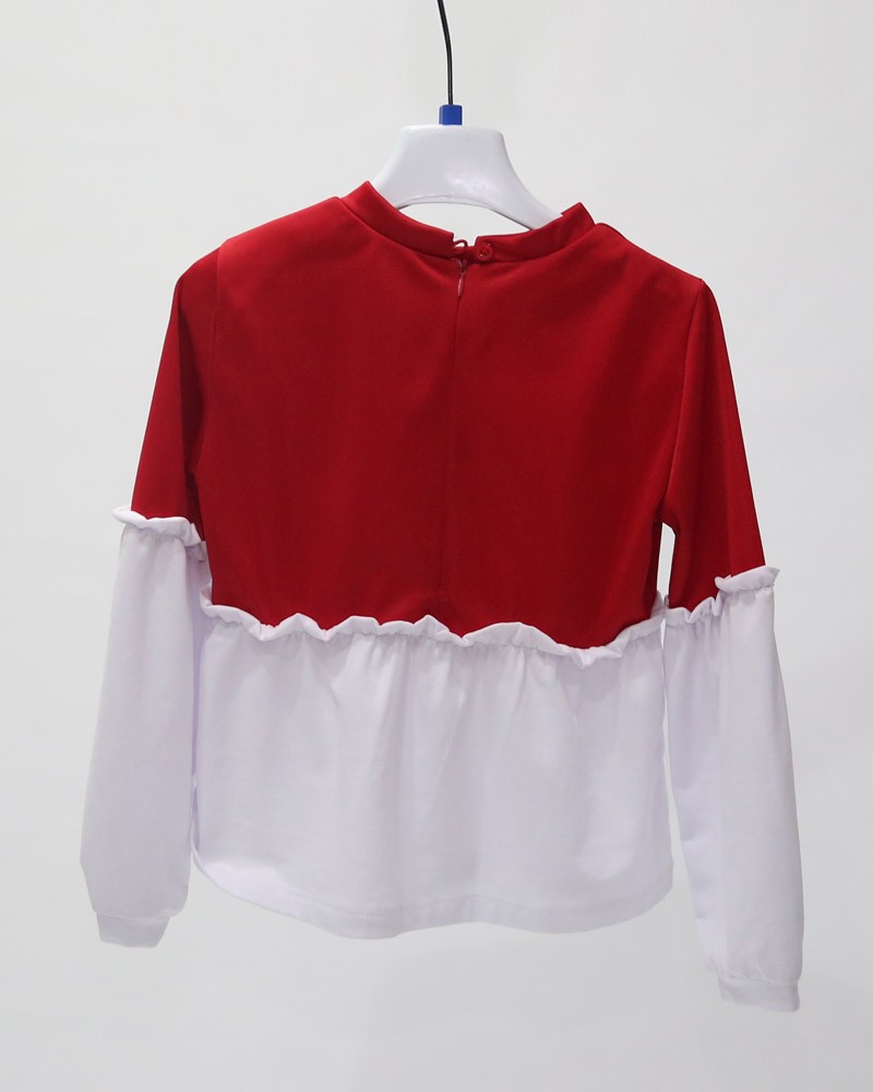 Maglia Ragazza Enylò, prodotto alla moda e di qualità, con occhio alle attuali tendenze. Outfit made in Italy, realizzato in due tessuti, tessuto acetato rosso 100% Poliestere con applicazione ricamo in lettere e, tessuto bianco bielastio.Capo colorato per affrontare le giornate grige dell'inverno,a scollo tondo con maniche lunghe realizzate in due colori, chiusura con lampo e bottone dietro. Veste ragazze dagli 8 a 16 anni. Si consiglia un lavaggio a mano a 30°, consegna subito a casa con massima sicurezza.