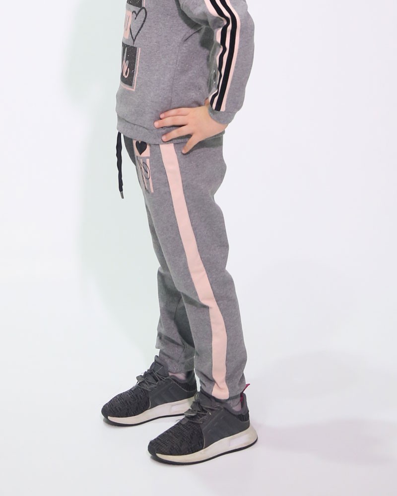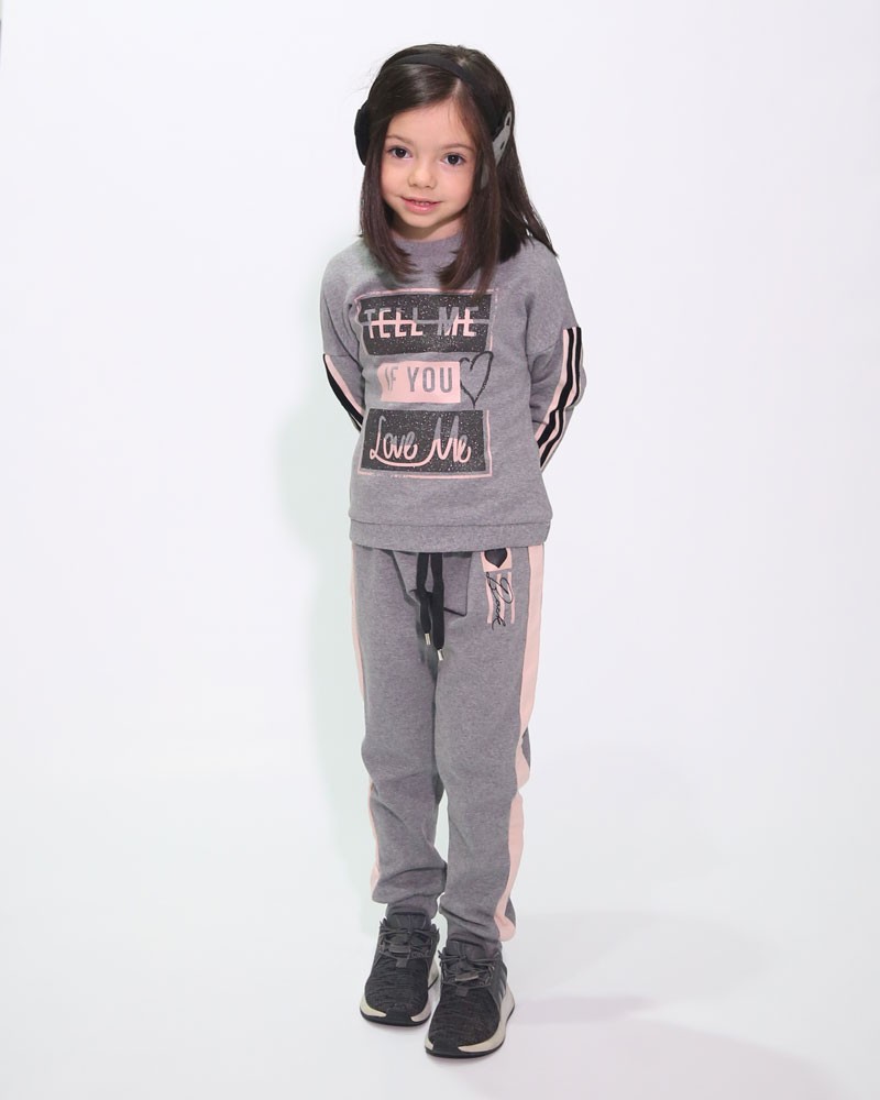 Il Pantalone Baby Enylò Felpato Grigio, composto da 96% Cotone e 4% Elastam, veste le nostre piccole donne dai 3/7 anni. Il capo presenta fascie laterali in rosa con stampa a cuore sul lato sinistro del pantalone. Il bustino è realizzato da un morbido elastico che termina nella parte avanti con un laccio nero, sostenuto da due occhielli in Nichel. Enylò lo abbina alla Felpa Corta con Stampa Glitterata "TELL ME, IF YOU LOVE ME" (articolo ENAI180241).