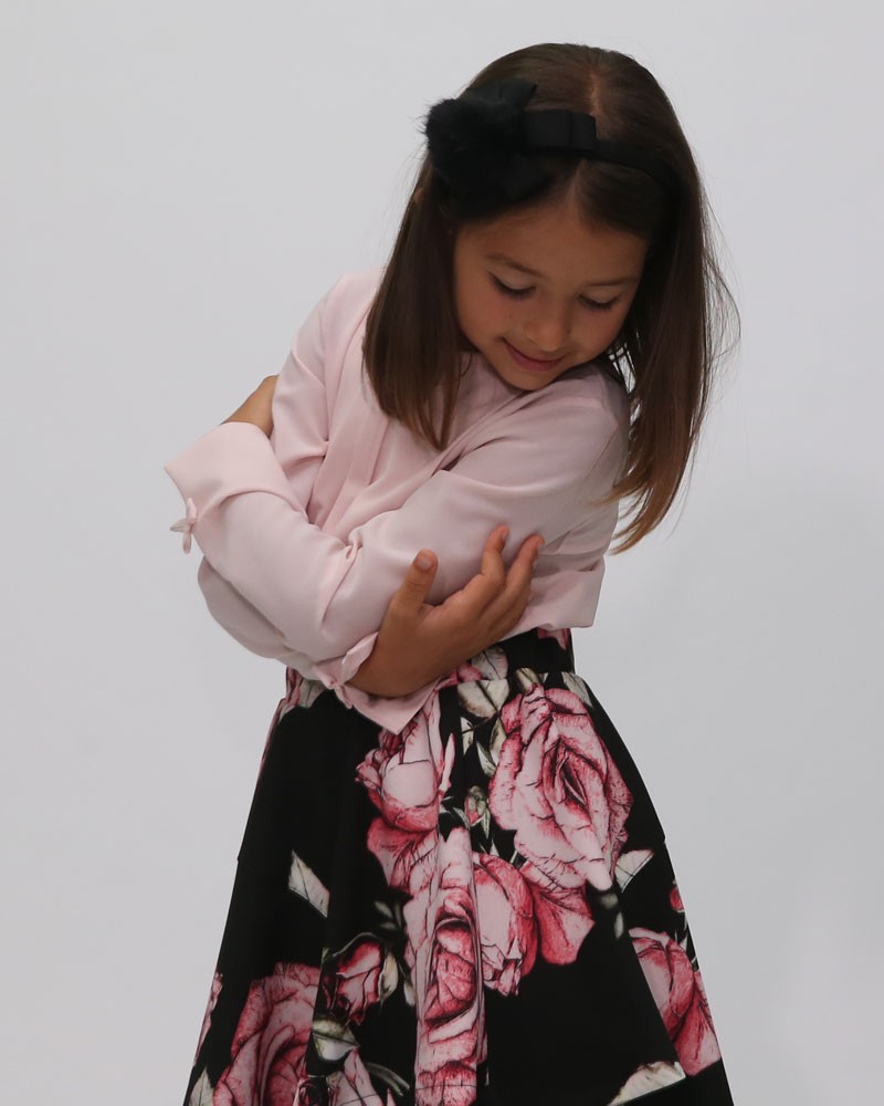 Gonna Ragazza Enylò in Fantasia Fiori, Stile Pipistrello. Veste da 8 a 14 anni.