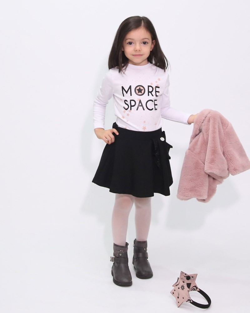 La maglia Enylò a girocollo con stampa "Space", a maniche lunghe, è realizzata per bambine dai 3 ai 7 anni. In tessuto bielastico in cotone garzato, composto da 96% Cotone e 4% Elastam, presenta una stampa personalizzata, effetto lucido. Si consiglia un lavaggio a mano. Consegna rapida e sicura