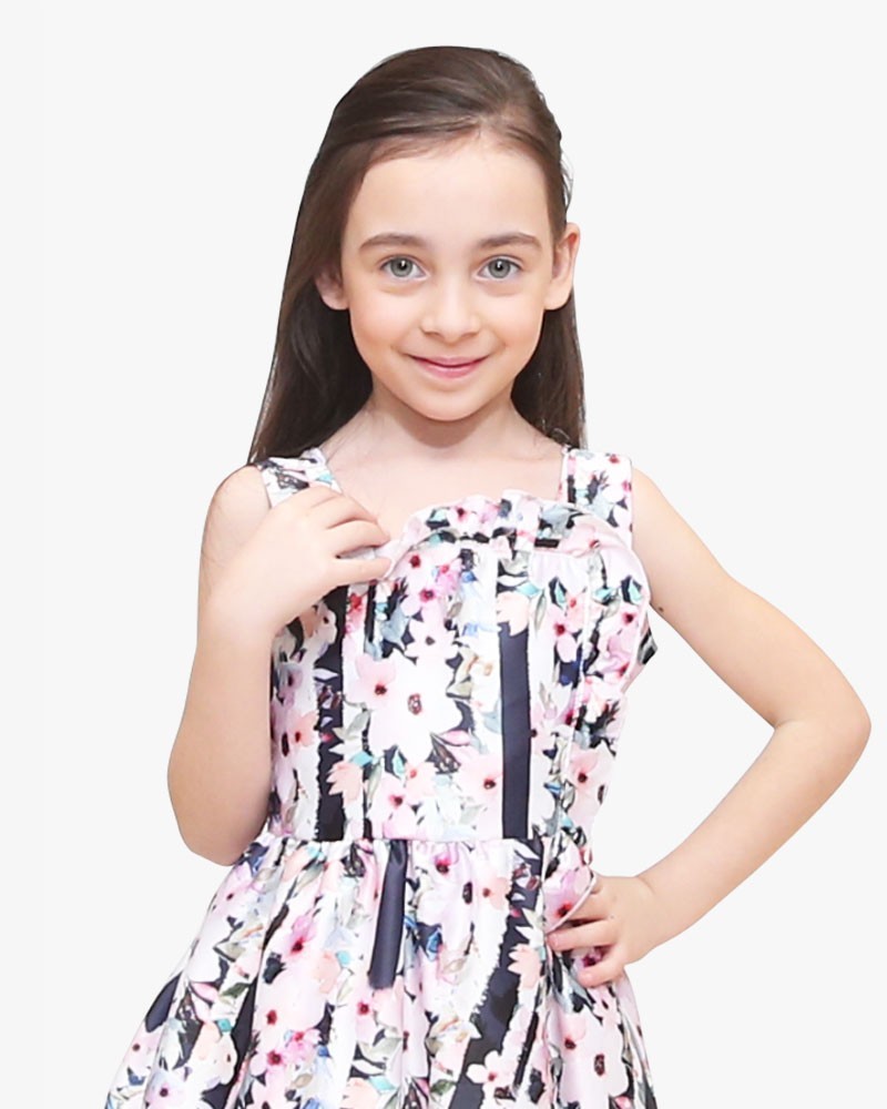 Vestito Baby Enylò con Rouches in Fantasia Righe e Fiori