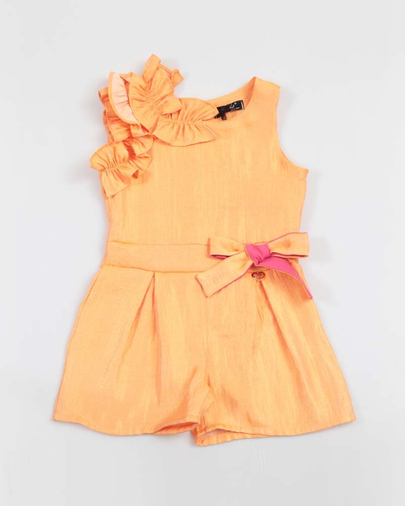 Tuta Con Roush E Fiocco Bicolore Tessuto Lucido